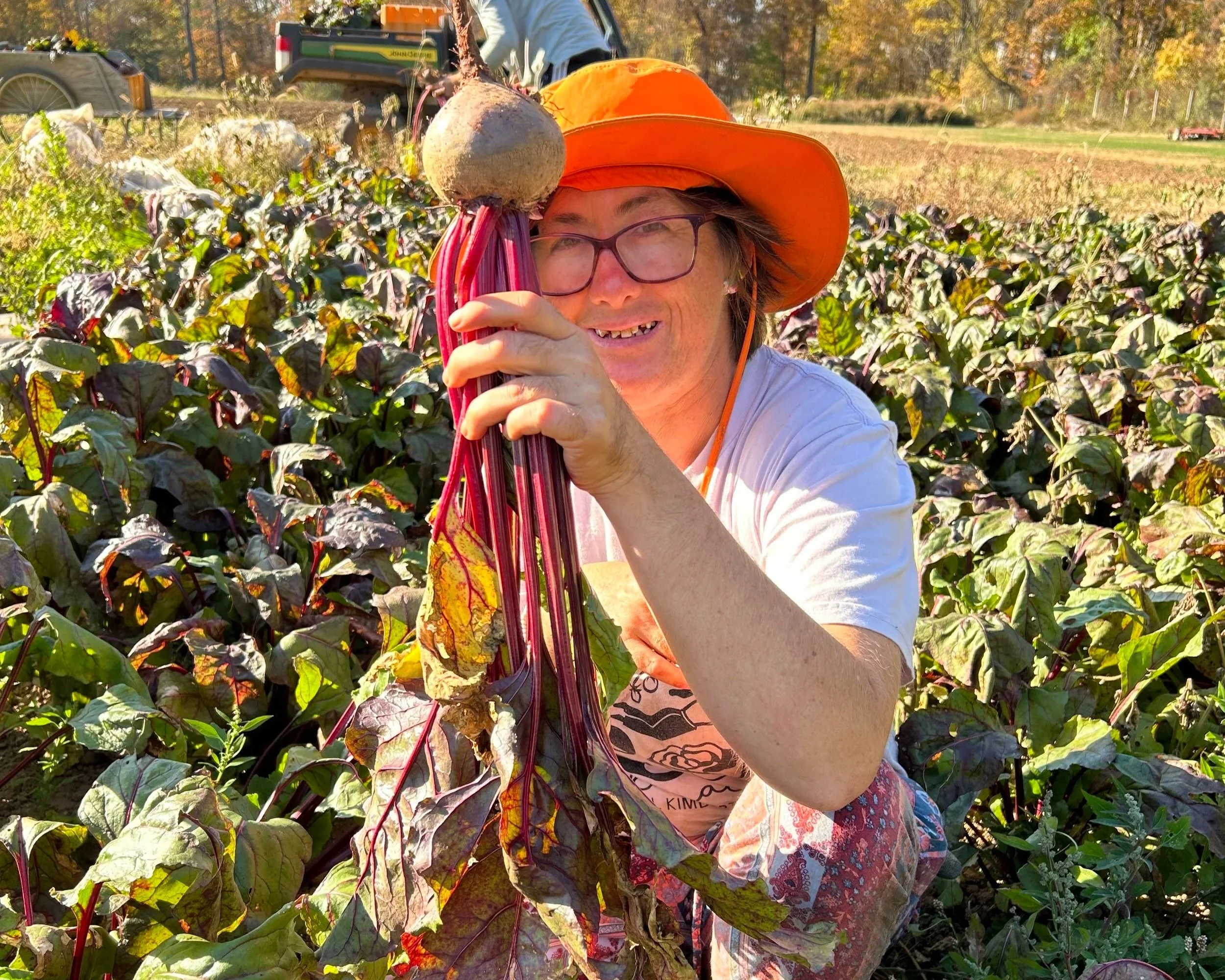 Sonia picking beets in the CSA garden.
