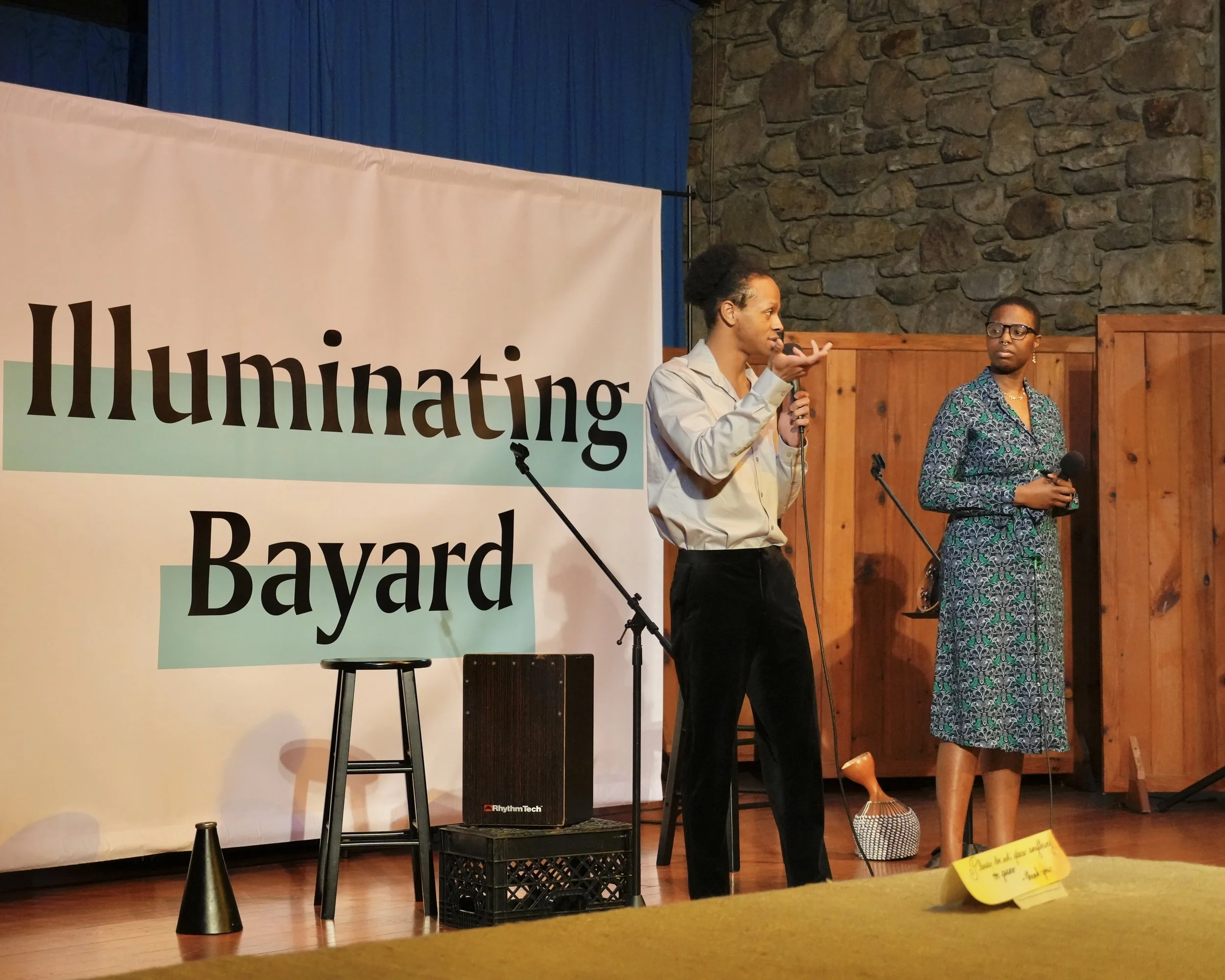 Actors from People’s Light Theater performing Illuminating Bayard at Rose Hall.