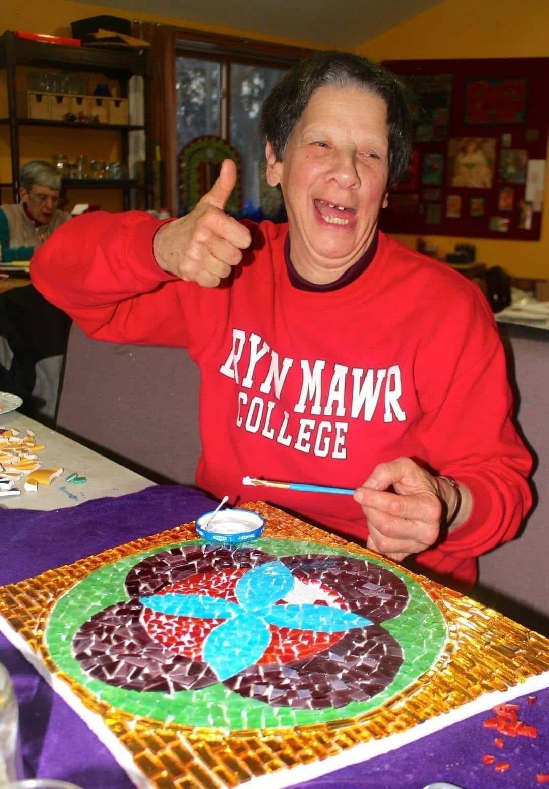 Eva was always aware of how she was different from her siblings at her original home, but Camphill Village Kimberton Hills allowed her to have her very own home amongst peers. After her trial stay, she was invited to move in. She loved mosaics, where she helped put together creative art projects. She loved her bell ringing job in the bell choir. She had always been musical, and she appreciated actively making music when she rang the bells. She went on Camphill Village vacations to the New Jersey shore, and even to India years ago.